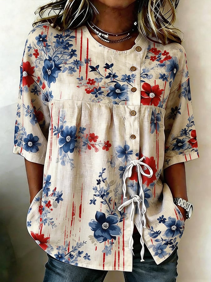 Women's Casual Retro Cotton-Linen Patriotic Shirt