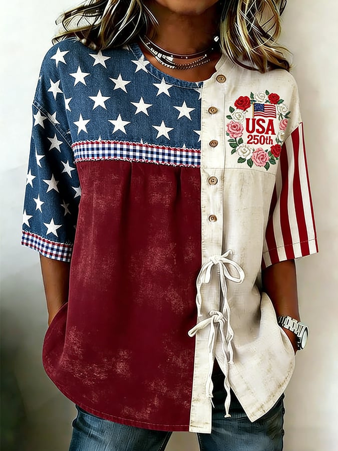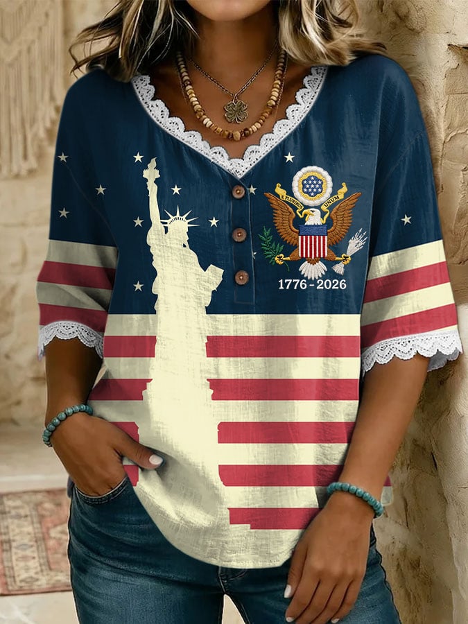 Women's 250th Anniversary Print Half Sleeve Casual Blouse