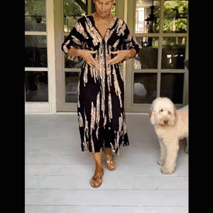 This dress in airy and very comfortable material is perfect for a hot summer day and can be worn on all summer occasions. Be it on the beach or at a party.